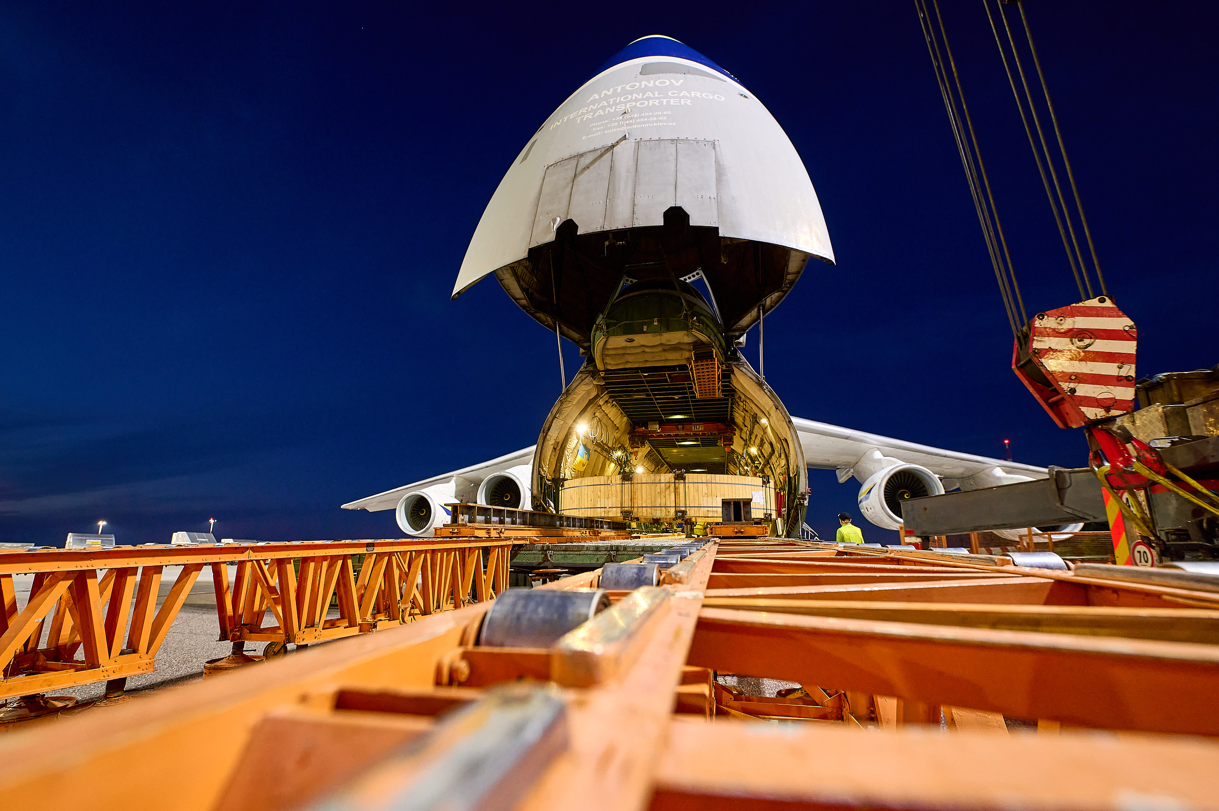 Another example: The machine bearing rings weigh 40 and 30 tons. Diameter: almost 6 meters each. They urgently need to be transported from Italy to Chile, where they are expected at a construction site. Logwin arranges two charter flights with an Antonov 124. Within one day, the heavy loads reach Concepción in Chile and are transported by truck to the construction site.